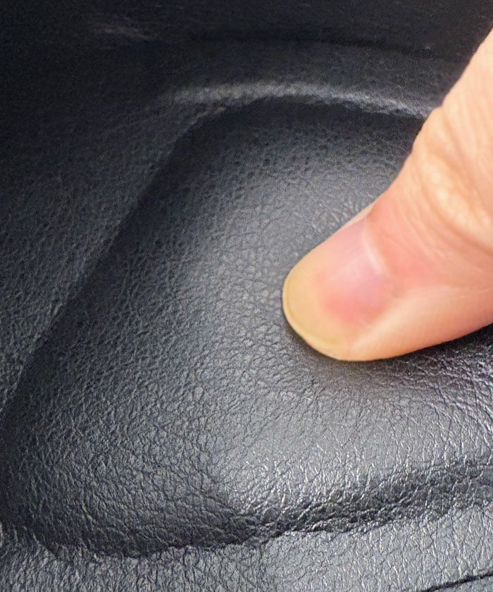 柔らかな合成皮革またはフェイクレザーを使用しており、表面にはほどよいハリと光沢のある仕上がり。