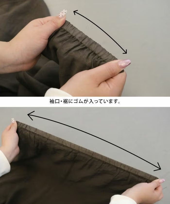 袖口と裾はリブ仕様で、バランスのとりやすいデザイン。
