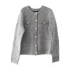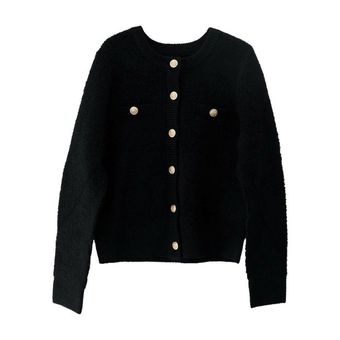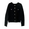 ゴールドボタンがアクセントになるので、シンプルなインナーでも華やかに決まります。