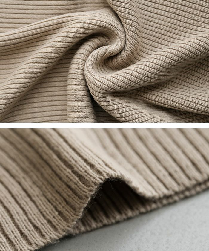 ほど良くフィットするリブ編みが身体のラインをきれいに見せてくれる一方で、窮屈さを感じにくい柔らかな着心地。