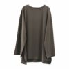 ゆったりとした身幅と広めの袖口が特徴で、気になる二の腕や体のラインをさりげなくカバーしながら、女性らしい柔らかさを引き立ててくれます。