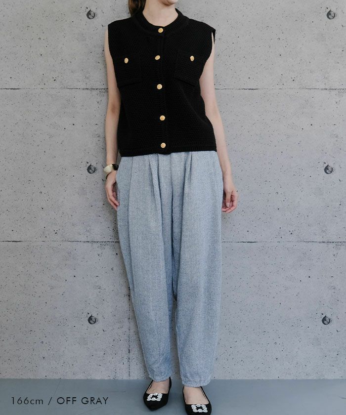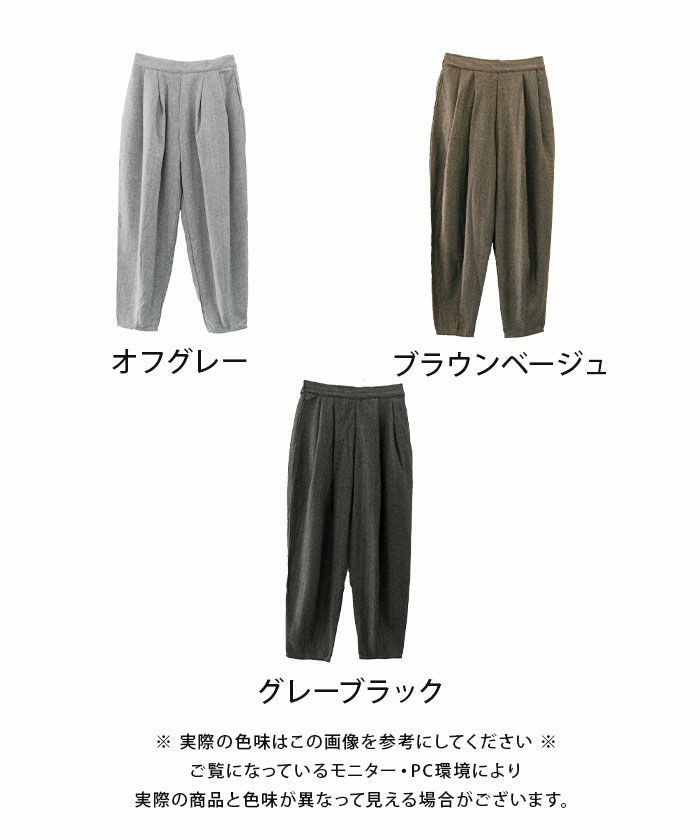 上品な雰囲気を演出してくれる「ヘリンボーンタックパンツ」。