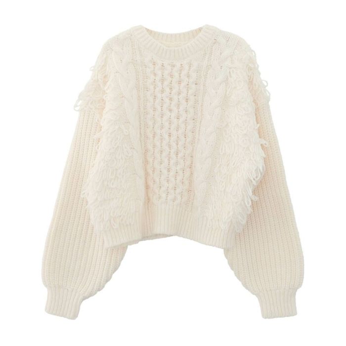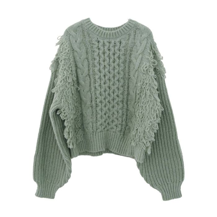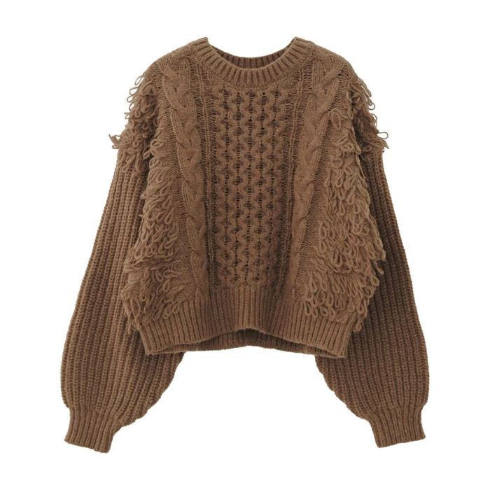 送料無料 ループフリンジケーブル編みニットトップス 秋 冬 M レディース | アクアガレージ aquagarage