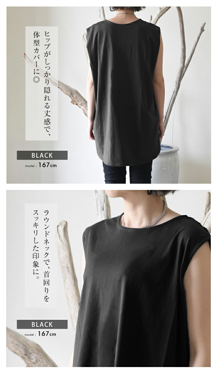 送料無料 ノースリーブカットソー レディース 春 夏 ロンT チュニック ノースリーブ ≪ゆうメール便配送20・代引不可≫ | アクアガレージ aquagarage