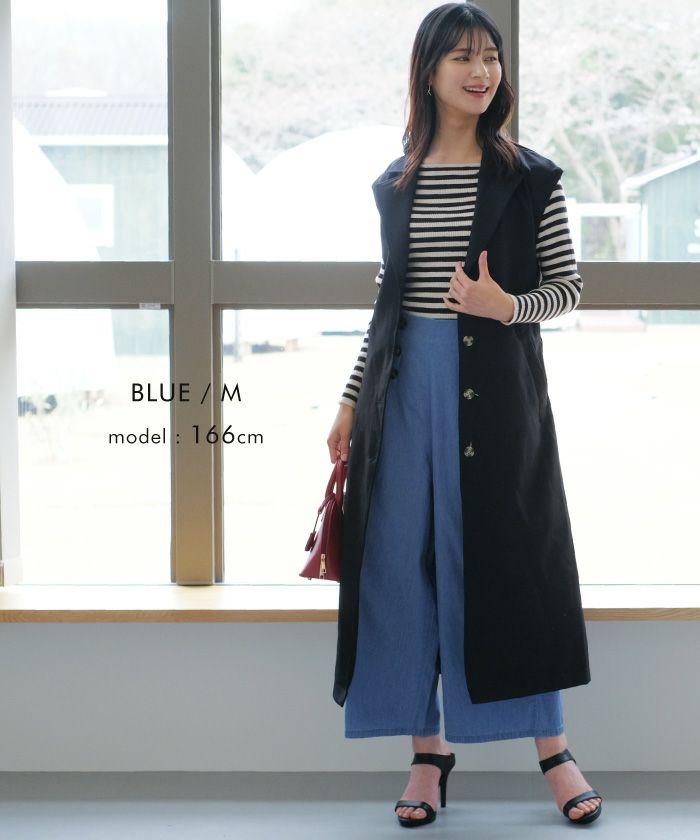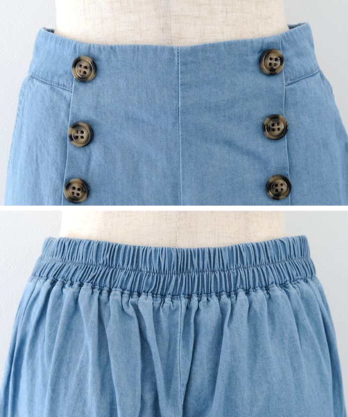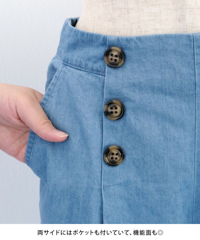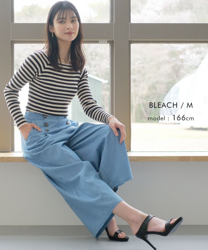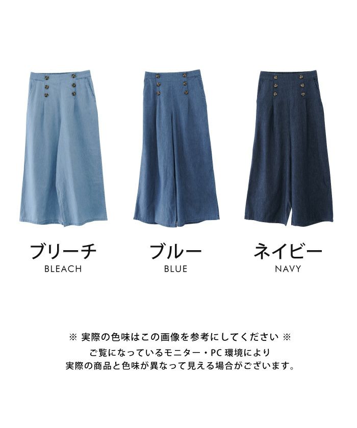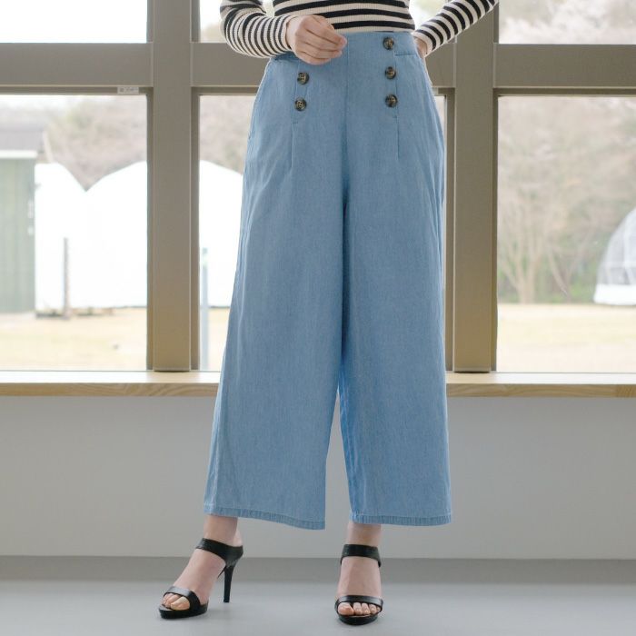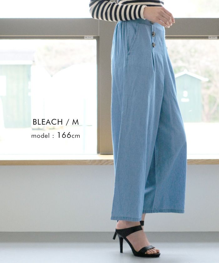 【最終値下げ価格】デニムウエストボタンワイドパンツ レディース 春 夏 秋 M L | アクアガレージ aquagarage