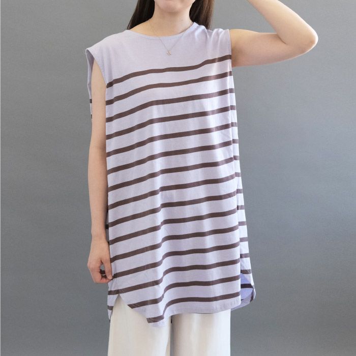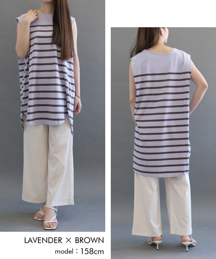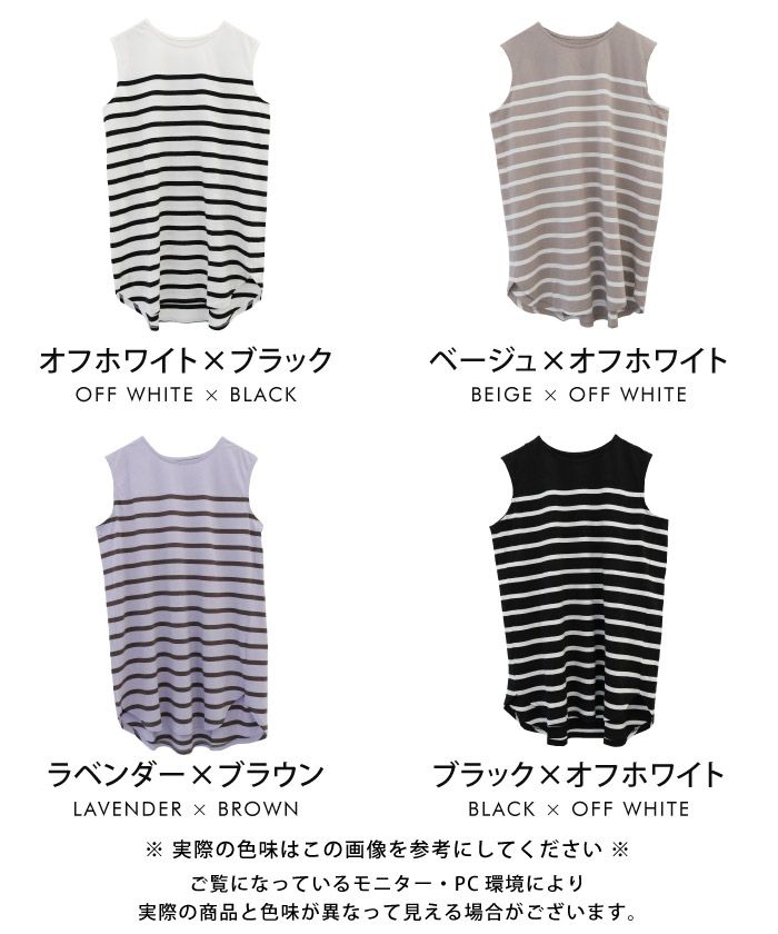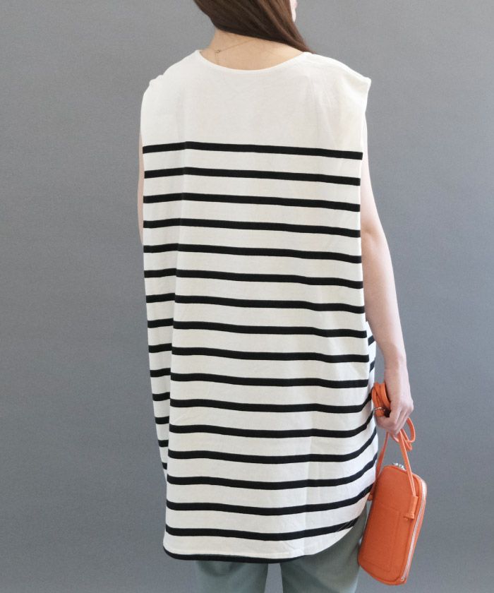 【999円祭り】ボーダーノースリーブカットソーチュニック レディース 春 夏 M | アクアガレージ aquagarage