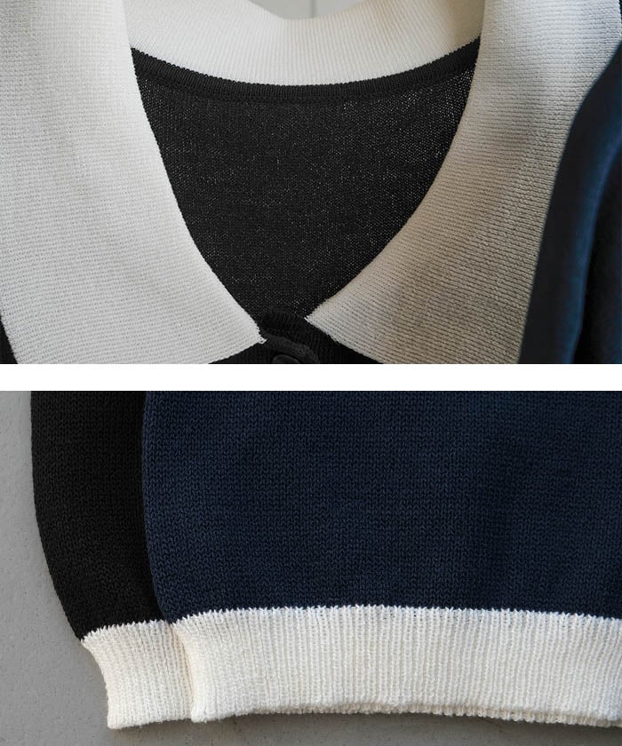 送料無料 襟付きリブニットバイカラーカーディガン 春 秋 冬 M レディース≪ゆうメール便配送30・代引不可≫ | アクアガレージ aquagarage