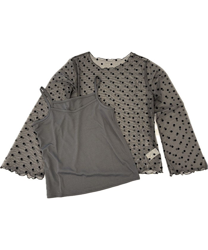 送料無料 キャミ付きドットメローシアーブラウス 春 夏 秋 M レディース ≪ゆうメール便配送10・代引不可≫ | | アクアガレージ aquagarage