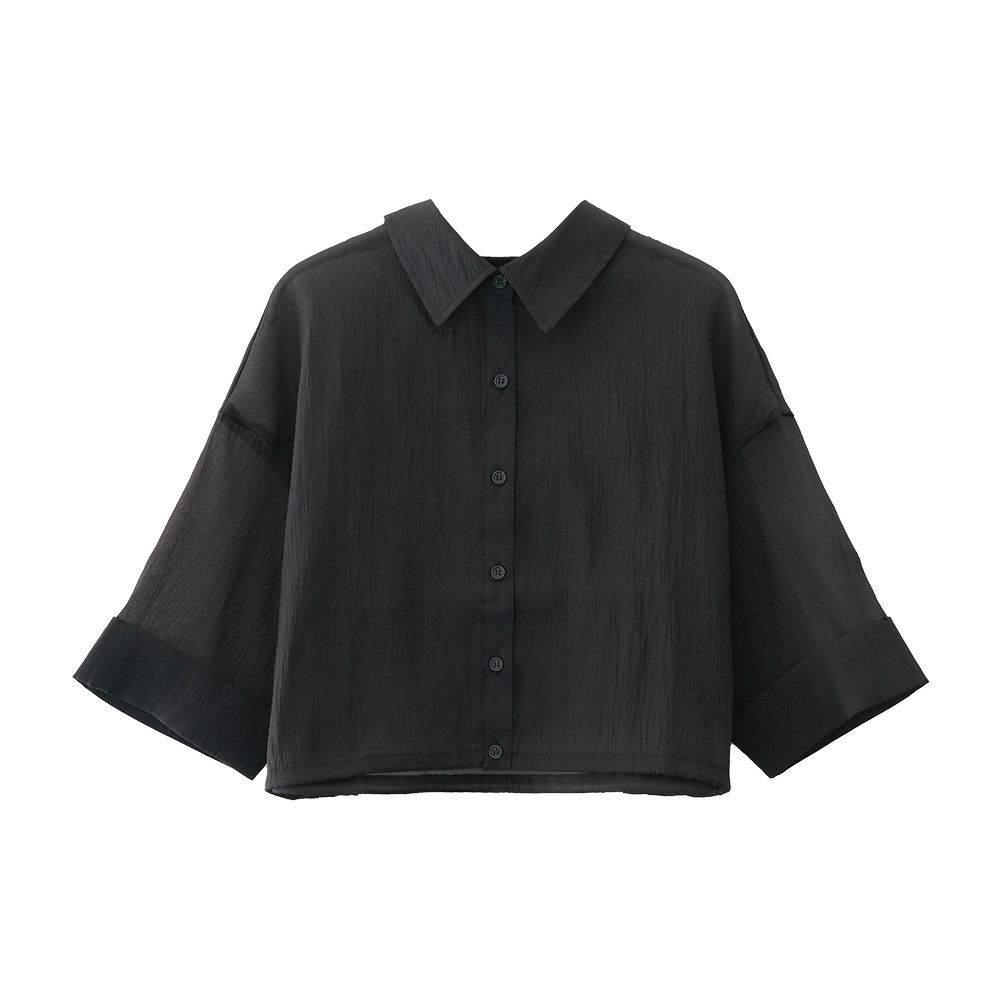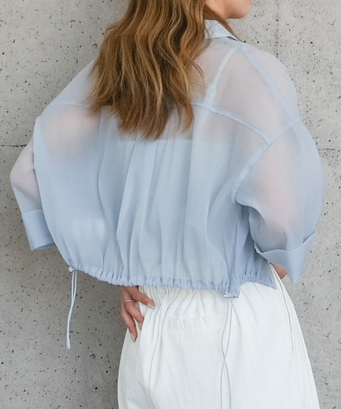送料無料 裾ドロストワイドスリーブシアーシャツ レディース 春 秋 冬 ≪ゆうメール便配送20・代引不可≫| アクアガレージ aquagarage