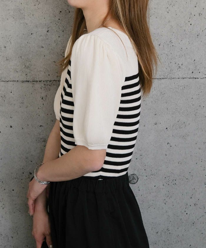 送料無料 前後2wayパフスリーブニットトップス レディース 春 夏 M L 半袖 ≪ゆうメール便配送20・代引不可≫ | アクアガレージ aquagarage