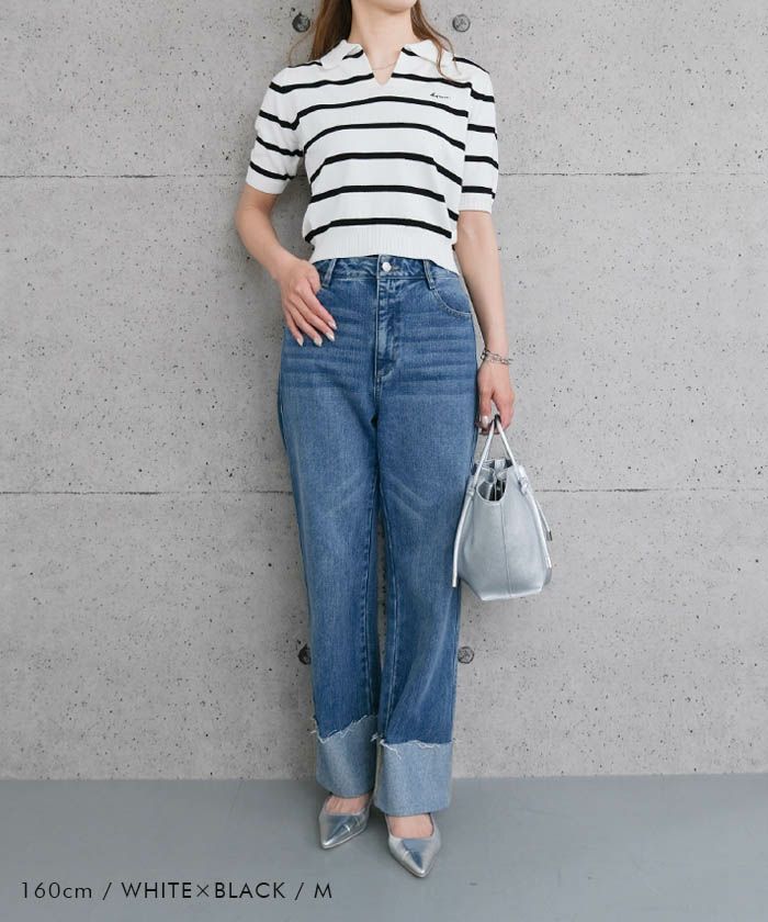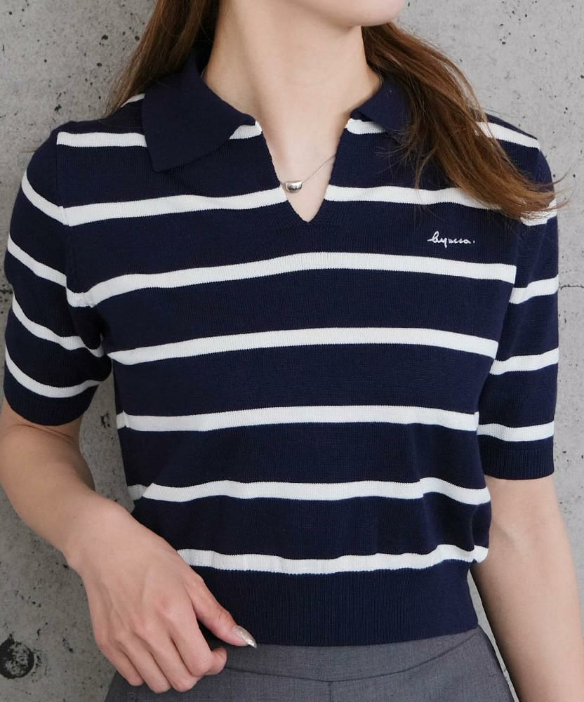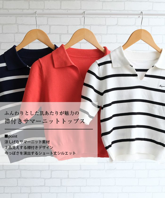 送料無料 襟付きサマーニットトップス レディース 春 夏 M L 半袖 ≪ゆうメール便配送10・代引不可≫ | アクアガレージ aquagarage