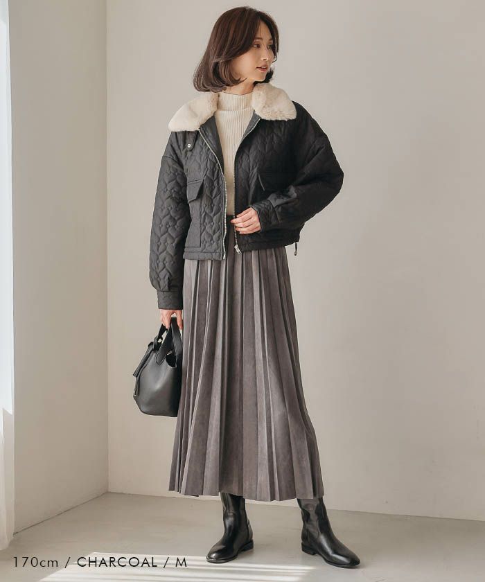 送料無料 ハートキルトファーカラーショートブルゾン 秋 冬 M | アクアガレージ aquagarage