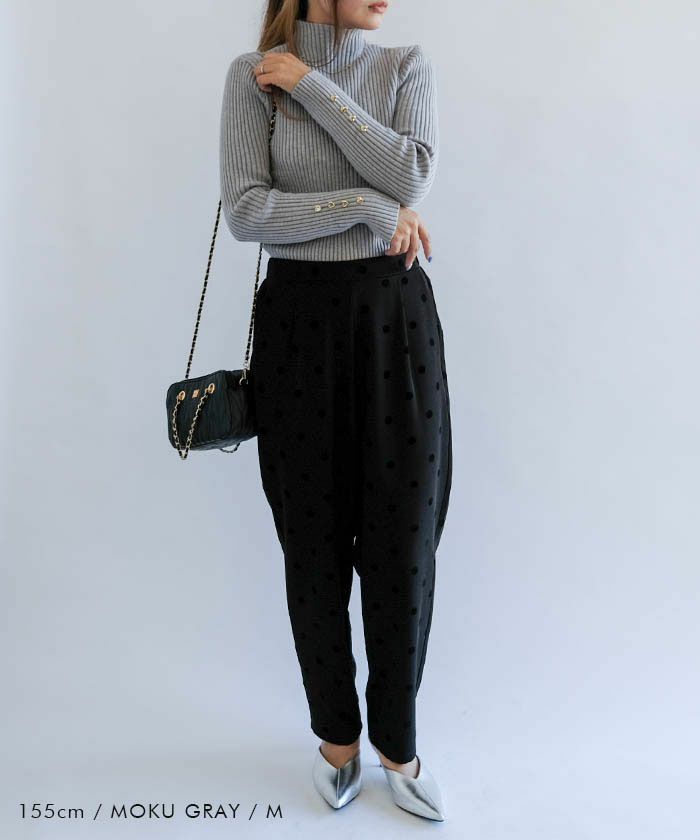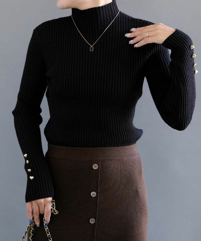 送料無料 ハイネック袖ハートボタンリブニットトップス 春 秋 冬 M レディース ≪ゆうメール便配送30・代引不可≫ | | アクアガレージ aquagarage