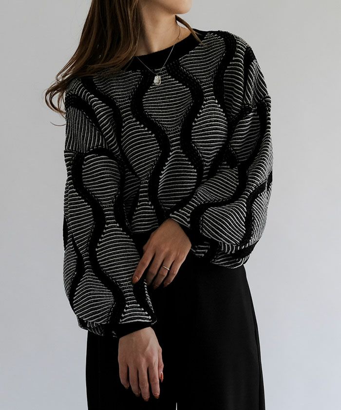 送料無料 ニュアンス柄ニットトップス 秋 冬 M レディース | アクアガレージ aquagarage