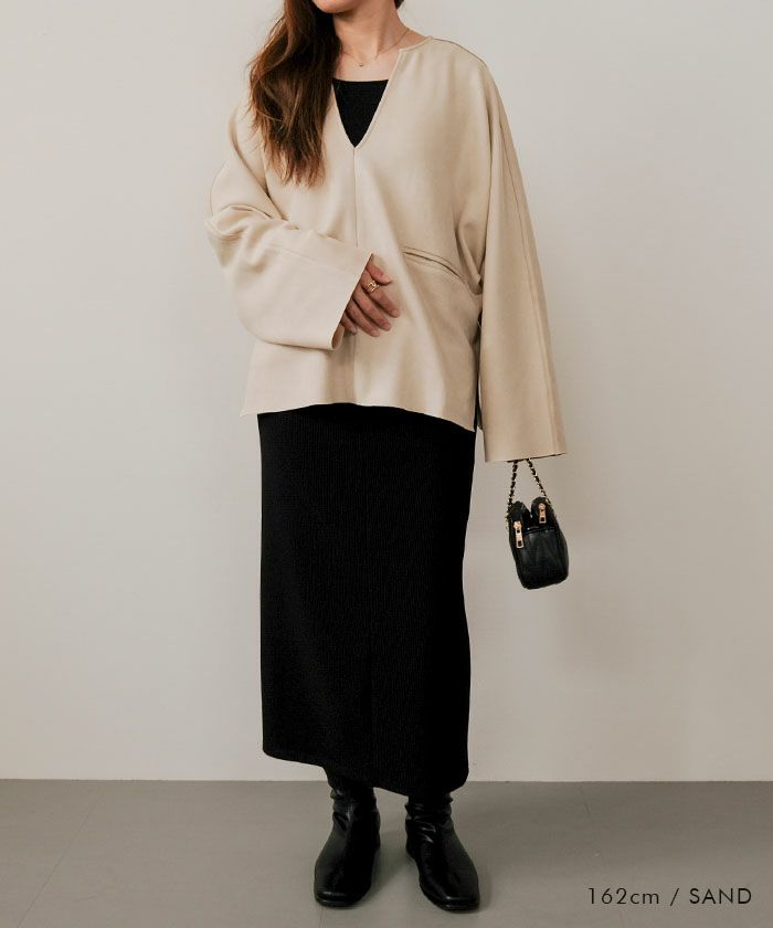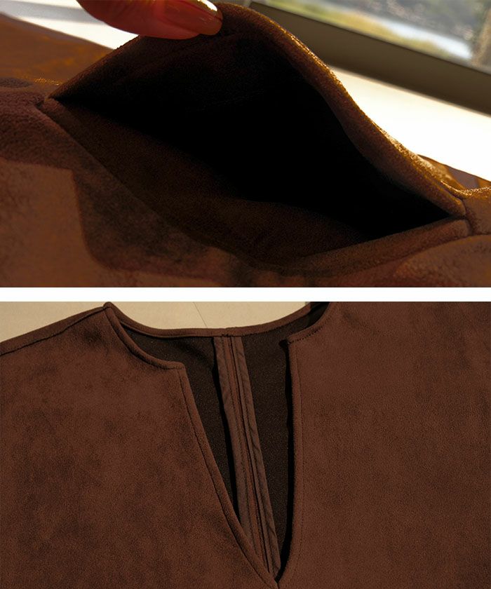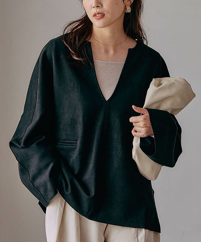 送料無料 スエードキーネックペプラムトップス レディース 春 秋 冬 M ≪ゆうメール便配送20・代引不可≫|アクアガレージ aquagarage