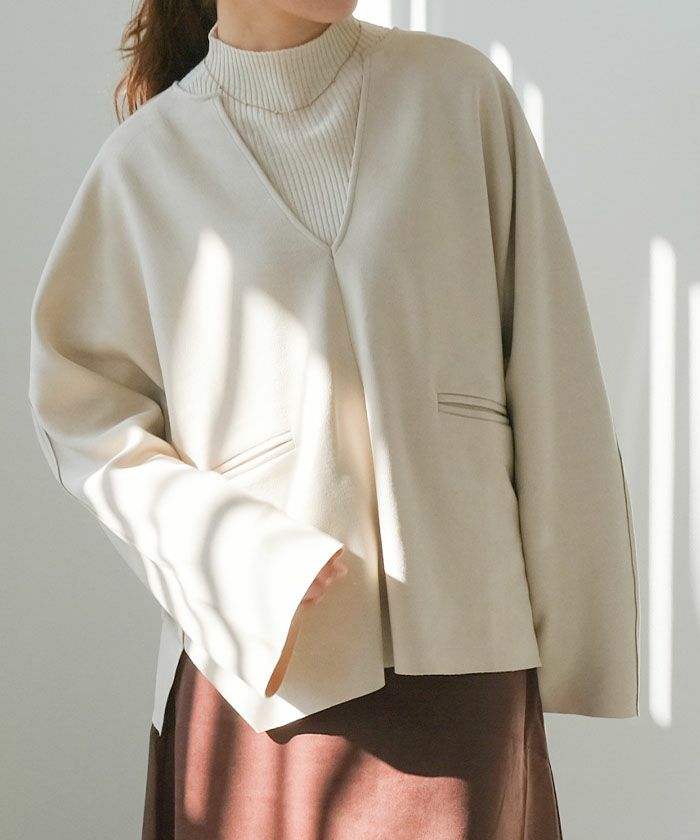 送料無料 ワイドスリーブノーカラーニットジャケット 秋 冬 M レディース | アクアガレージ aquagarage