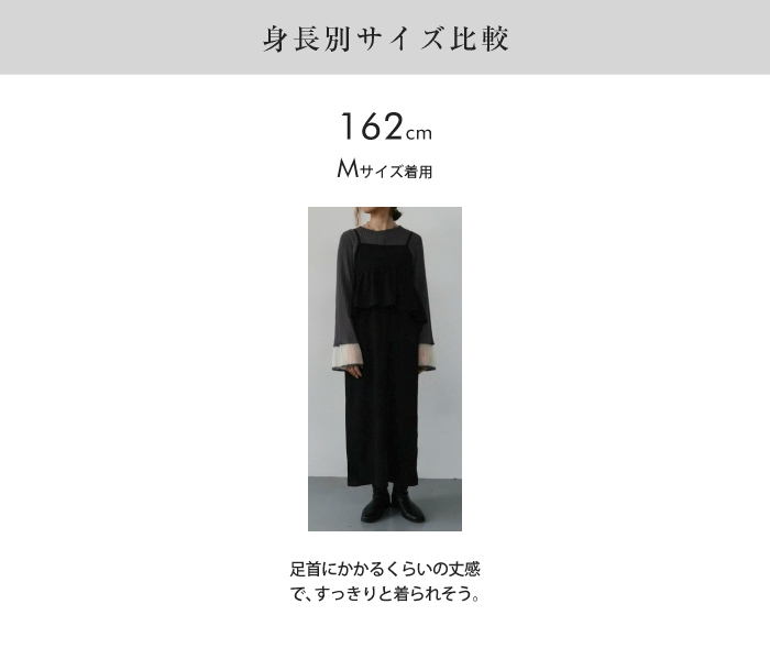 ウエスト位置でふんわりと広がる切り替えが自然にメリハリを生み出し、気になるお腹まわりやヒップラインをやさしくカバーしてくれます。