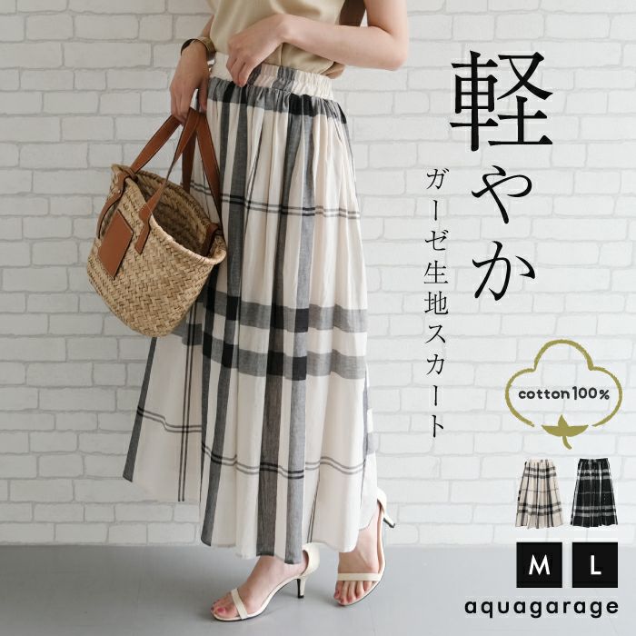 チェックガーゼギャザースカート 春 夏 秋 M L アクアガレージ aquagarage