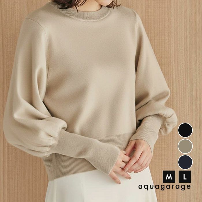ロングリブボリューム袖ニットトップス 春 秋 冬 M レディース≪ゆうメール便配送30・代引不可≫ | アクアガレージ aquagarage