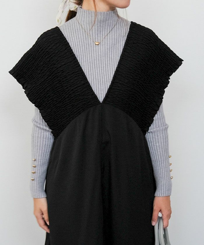 胸元やウエストに施されたシャーリングが自然にメリハリを作り出し、すっきりとしたラインを演出します。