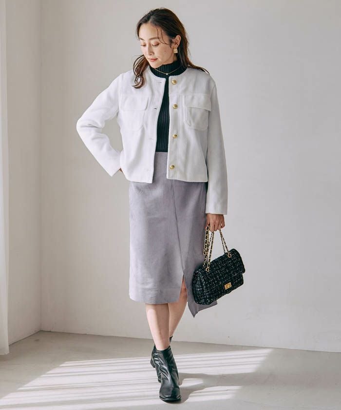 送料無料 襟配色フェイクスエードジャケット 秋 冬 M | アクアガレージ aquagarage
