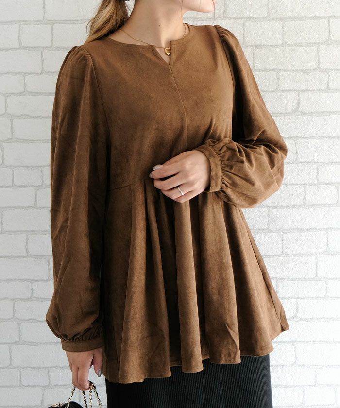 送料無料 スエードキーネックペプラムトップス レディース 春 秋 冬 M ≪ゆうメール便配送20・代引不可≫|アクアガレージ aquagarage