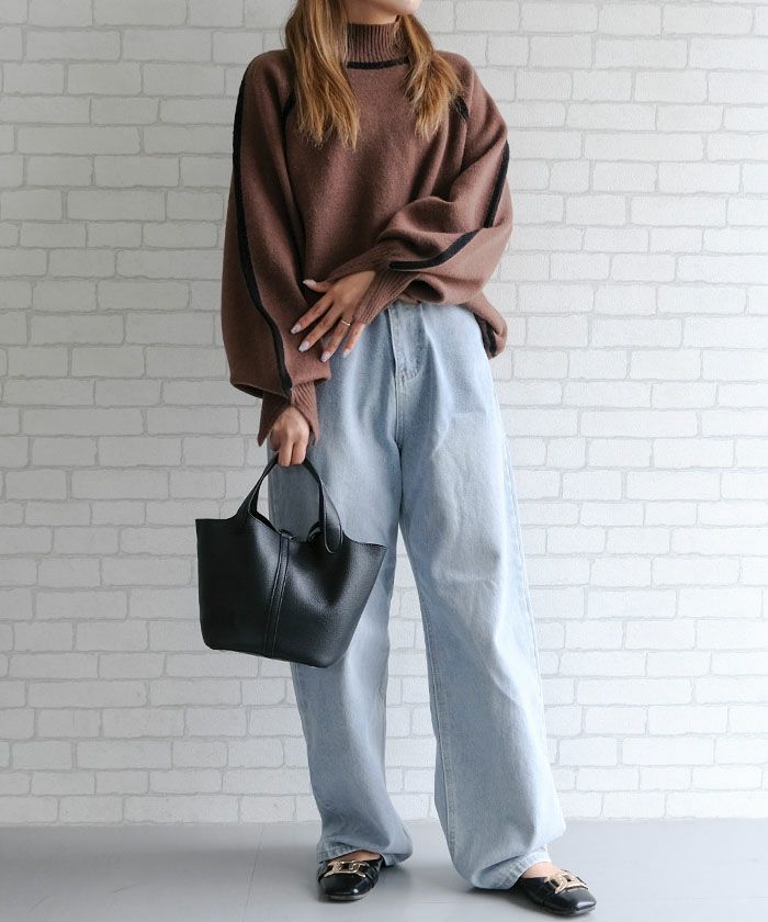 送料無料 ボトルネック配色リブニットトップス 春 秋 冬 M レディース ≪ゆうメール便配送30・代引不可≫ | | アクアガレージ aquagarage 一部予約(11月下旬頃)