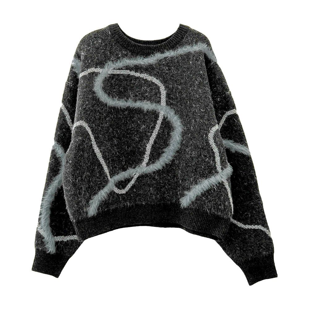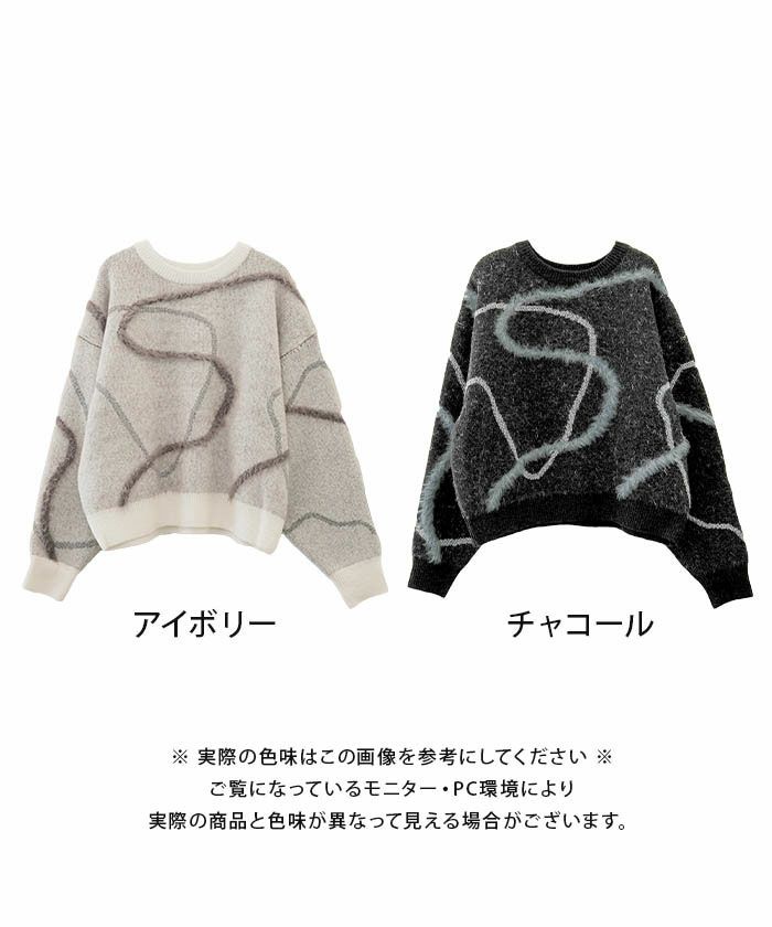 送料無料 ニュアンス柄ニットトップス 秋 冬 M レディース | アクアガレージ aquagarage
