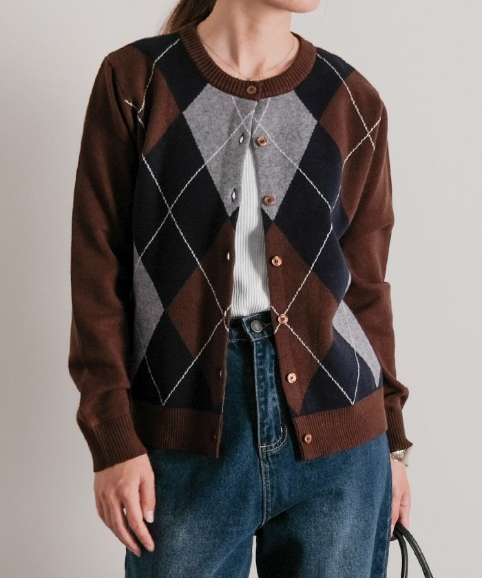 送料無料 アーガイル柄カーディガン 春 秋 冬 M レディース≪ゆうメール便配送30・代引不可≫ | アクアガレージ aquagarage