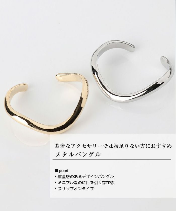 華奢なアクセサリーでは物足りない方におすすめの、存在感抜群のメタルバングル。