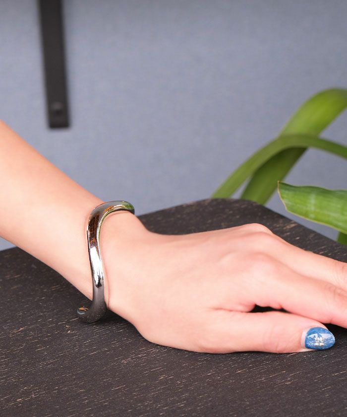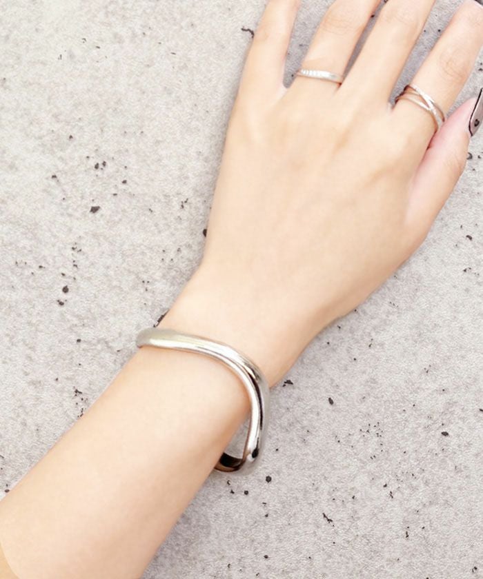 モード系やシンプルスタイルにぴったりの、クールで大人っぽい雰囲気をまとえるバングルです。