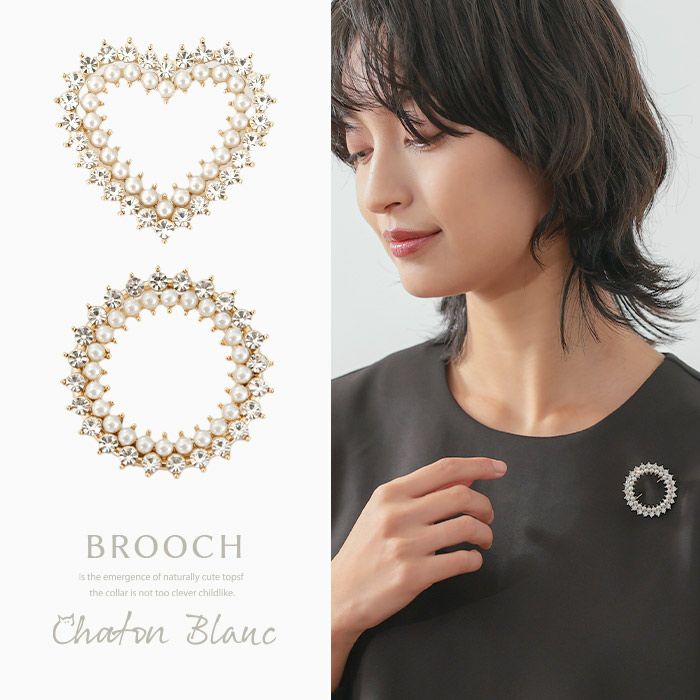 ゴールドトーンのフレームが温かみをプラスし、女性らしさを引き立てます。ジャケットやワンピースに添えるだけで、優雅で愛らしい印象を演出できます。