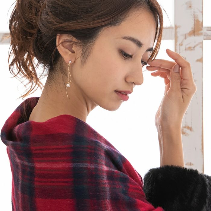 • 女性らしさが漂う、パール・ビジュー×ウェーブラインのピアス/イヤリング。