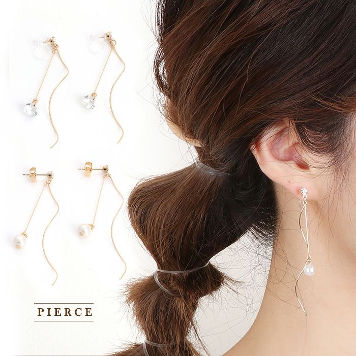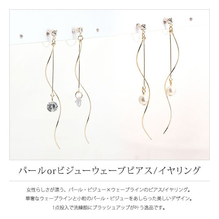 送料無料 パールorビジューウェーブピアス/イヤリング レディース ≪ゆうメール 便配送10・代引不可≫ | アクアガレージ aquagarage