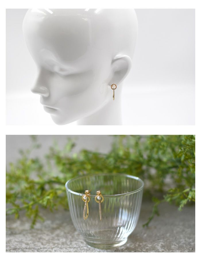 • ドロップモチーフと柔らかな光を放つパールが、華やかな印象を与えてくれるピアス。