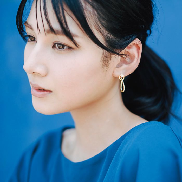 ドロップラインにビジューをあしらい品のある横顔を演出。カジュアルからきれいめコーデまで幅広いシーンで活躍。