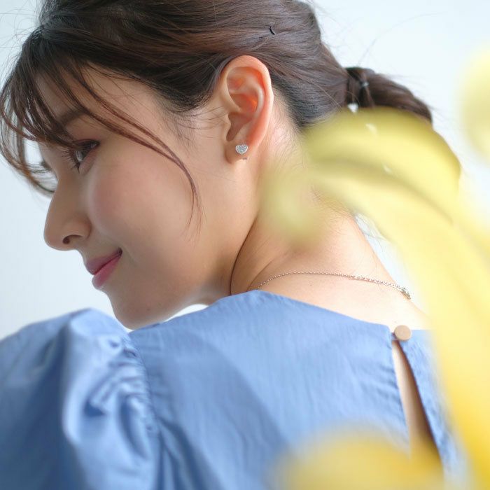 • 耳元でさり気なく煌めく、女性らしい印象のミニマムハートピアス。