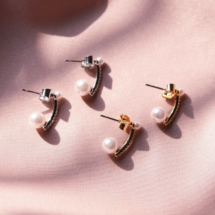 • 耳元に上品な輝きを添えてくれる。 ビジューバーパールピアス
