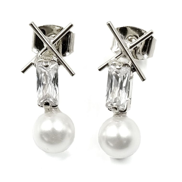 輝くビジューを敷き詰めたバーに、3連のパールがついたピアス。 小ぶりなパールが女性らしい印象を与えてくれます。 きれいめだからデイリーからお呼ばれまで幅広く活躍します。