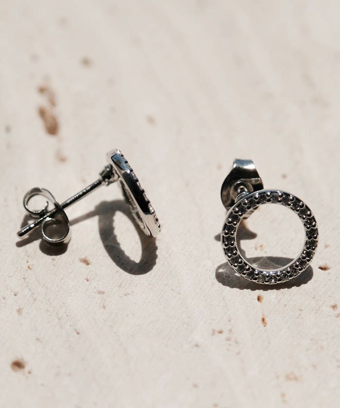 輝くビジューを敷き詰めた、サークルモチーフのピアス。 すっきりとした華奢なフォルムと程よいサイジングが女性らしい。 カジュアルからキレイめまで幅広いスタイルに対応してくれます。
