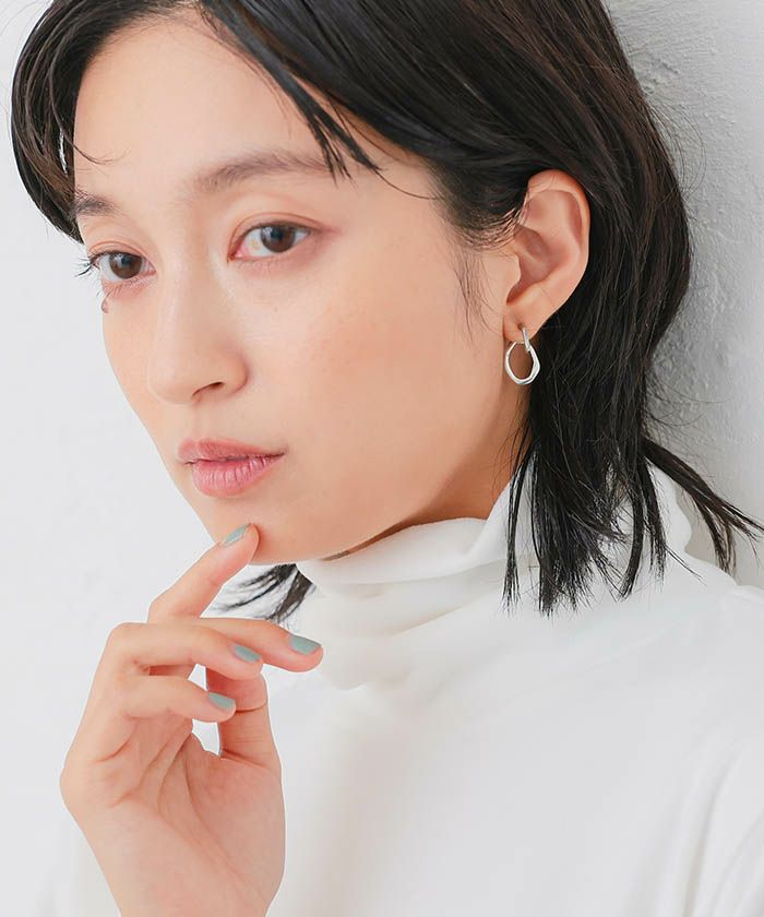 • 大人っぽさを演出するセミマットカーブラインバックキャッチピアス