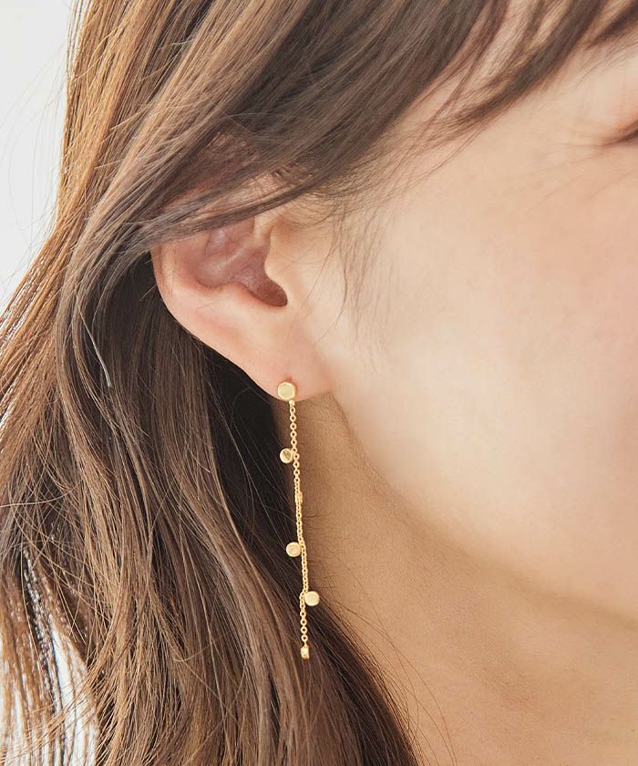 • 華奢な小粒なドットをあしらったドットチェーンピアス