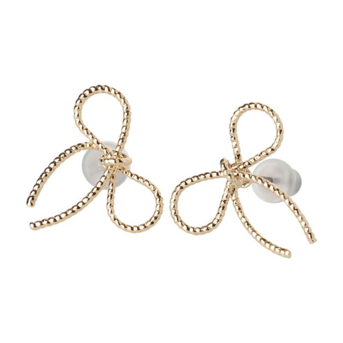 ころんとした立体感が愛らしいリボンモチーフのピアス。