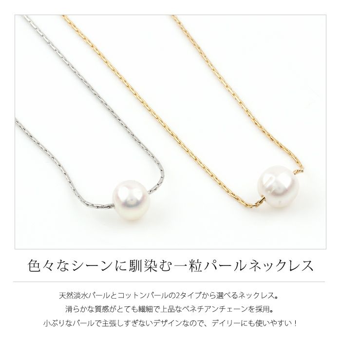 • 天然淡水パールとコットンパールの2タイプから選べるネックレス。