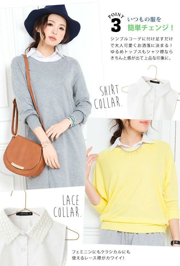送料無料 選べる3タイプ付け襟 角襟 レース襟 立ち襟 ≪ゆうメール便配送10・代引不可≫ | アクアガレージ aquagarage