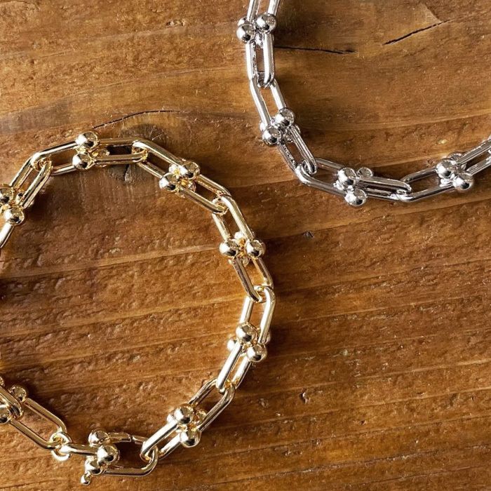 送料無料 チャンキーボールブレスレット レディース ゴールド シルバー Uリンクチェーン ≪ゆうメール便配送10・代引不可≫ | アクアガレージ aquagarage