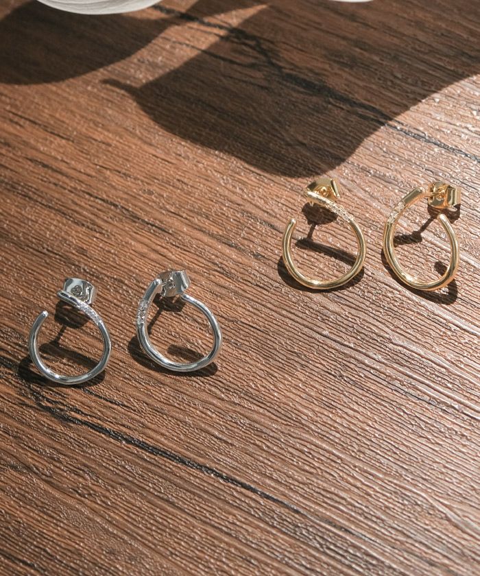 【最終値下げ価格】セミマットカーブラインバックキャッチピアス レディース ゴールド シルバー | アクアガレージ aquagarage
