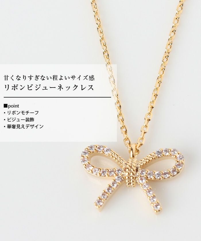 送料無料 リボンビジューネックレス ≪ゆうメール便配送05・代引不可≫ | アクアガレージ aquagarage