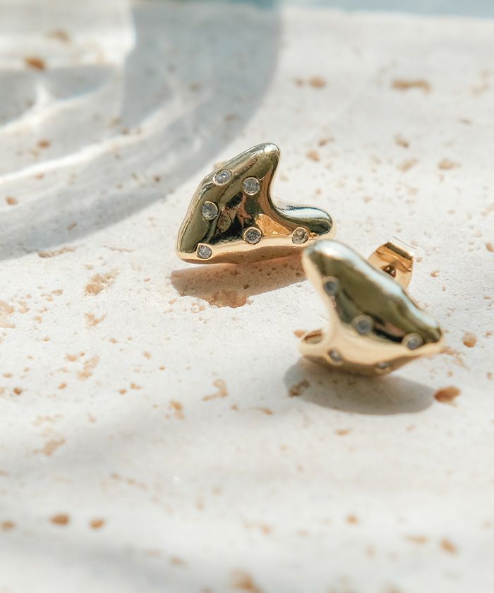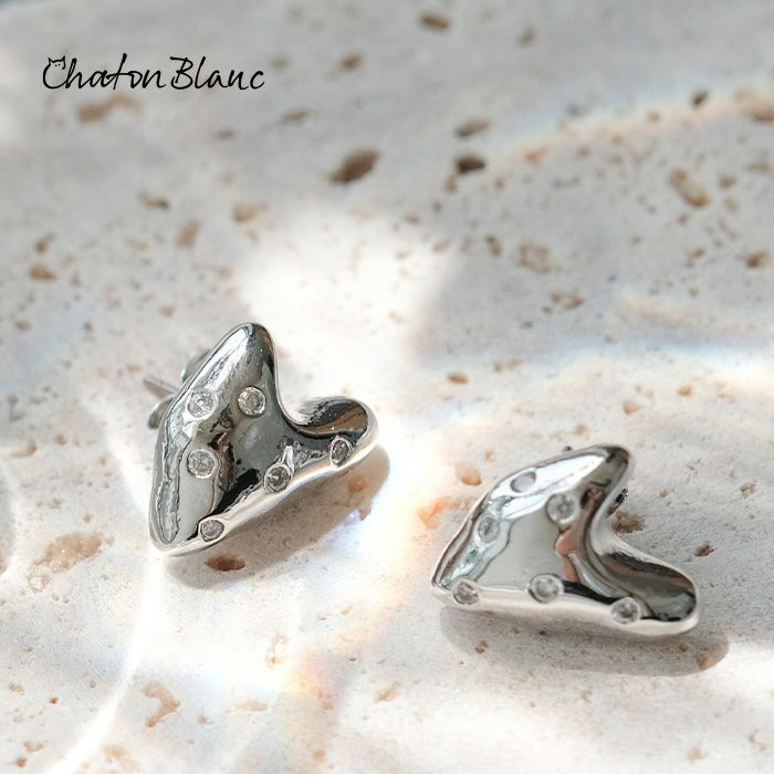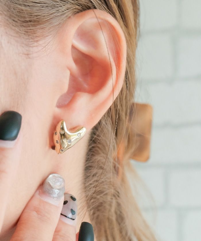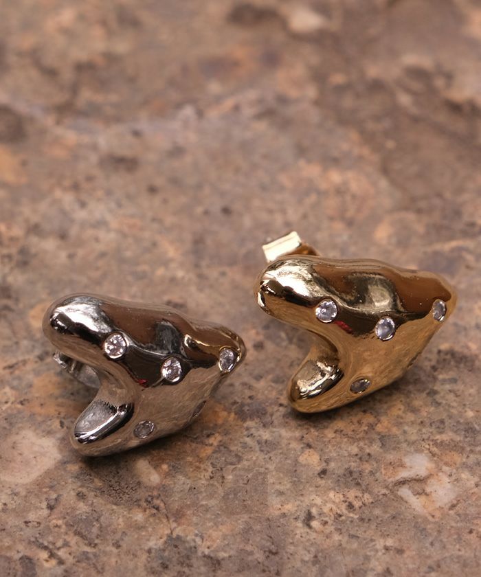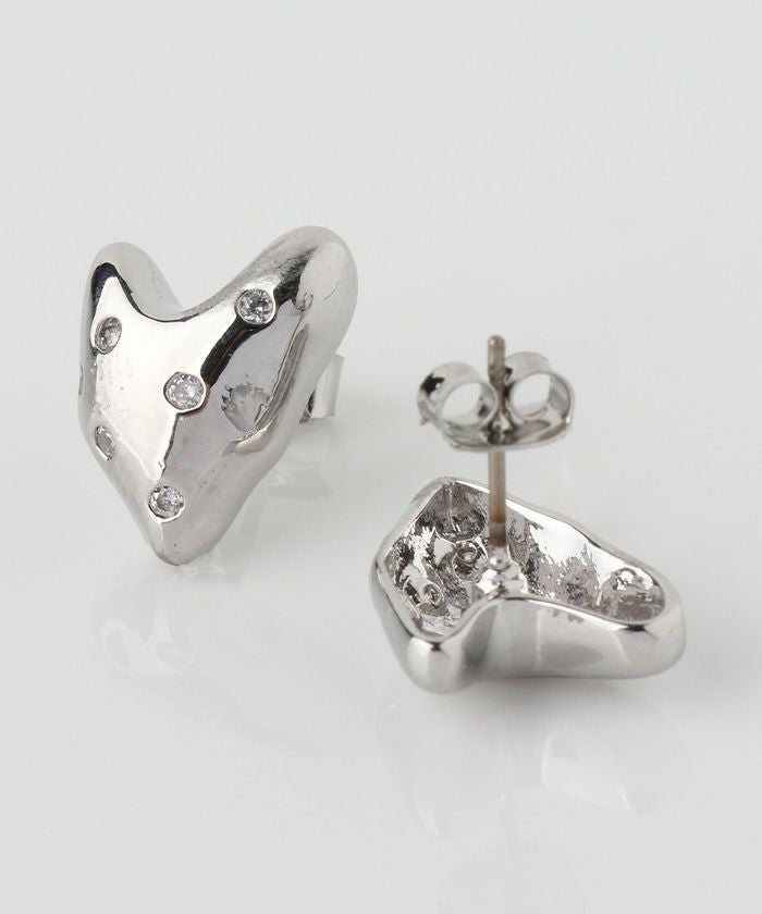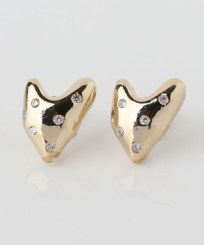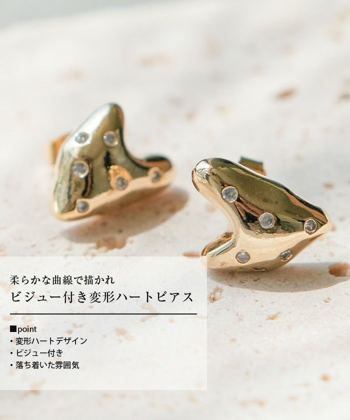 送料無料 ビジュー付き変形ハートピアス レディース ≪ゆうメール便配送20・代引不可≫ | アクアガレージ aquagarage
