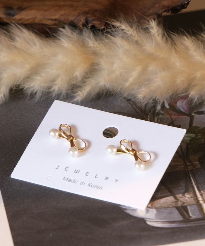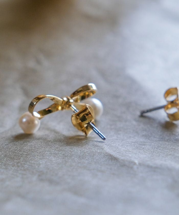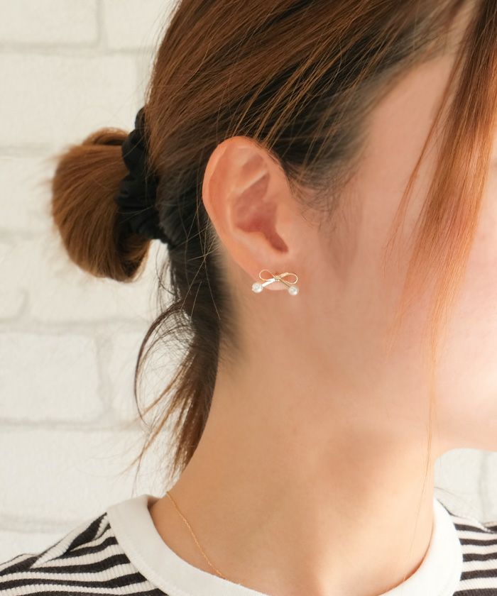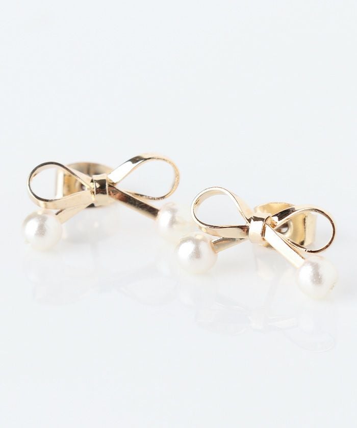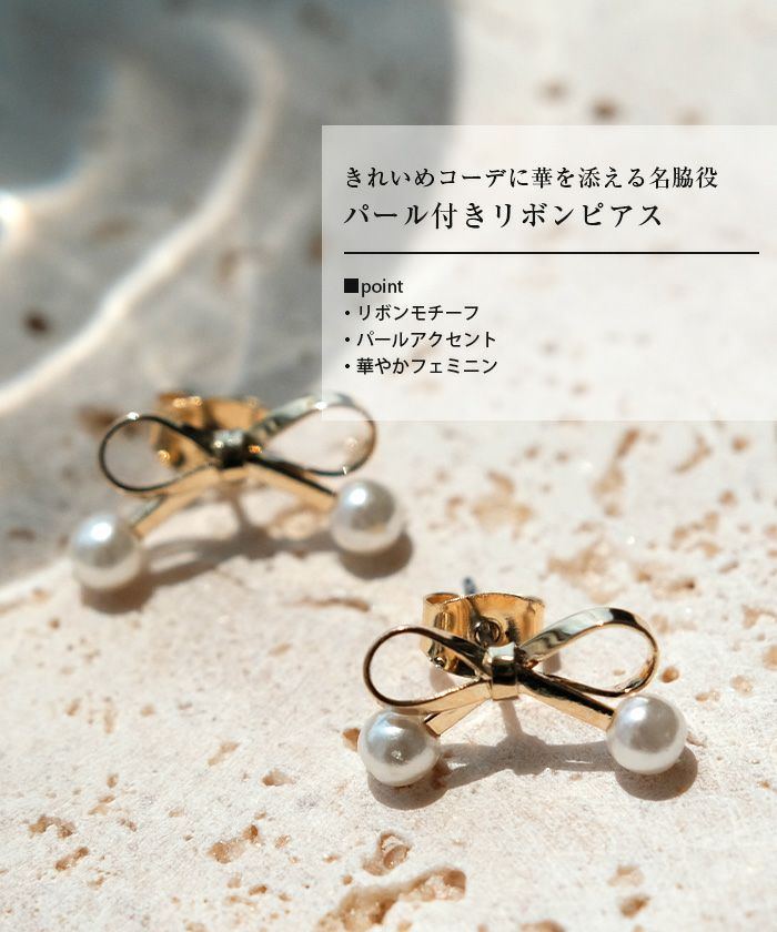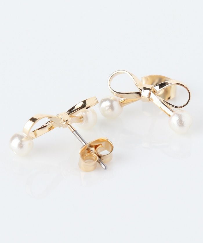 送料無料 パール付きリボンピアス レディース ≪ゆうメール便配送20・代引不可≫ | アクアガレージ aquagarage